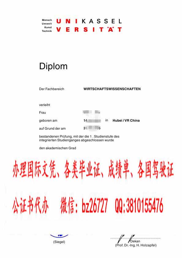 【产品介绍】: 德国卡塞尔大学毕业证学