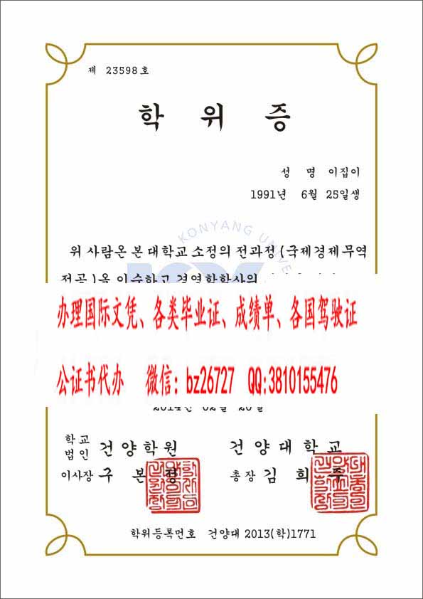 韩国建阳大学毕业证范本
