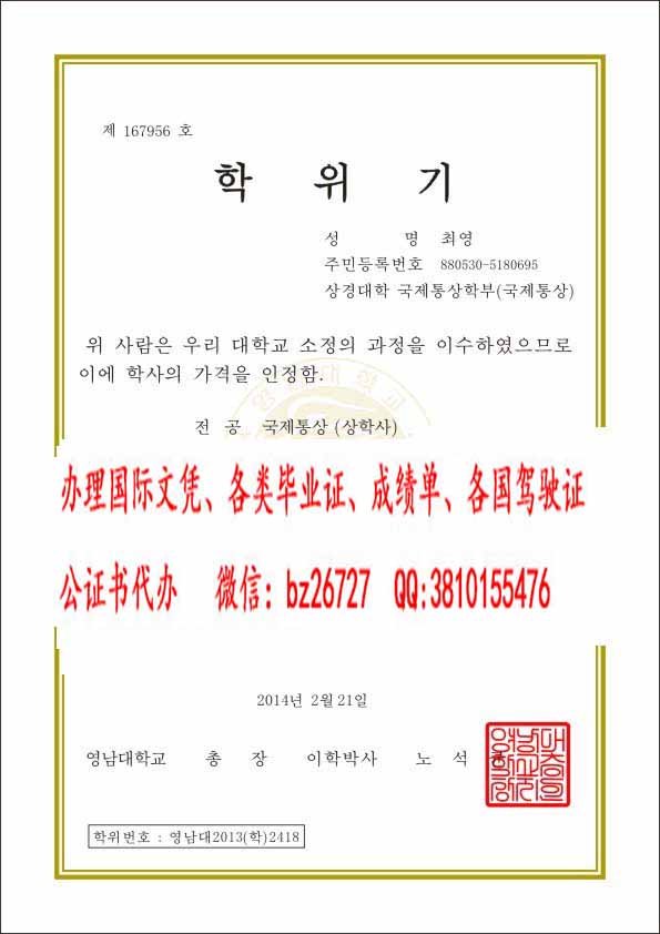 【产品介绍】: 韩国岭南大学毕业证样本