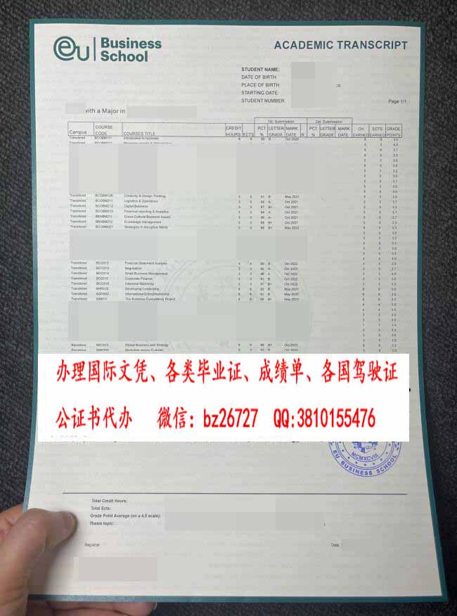 EU商学院成绩单