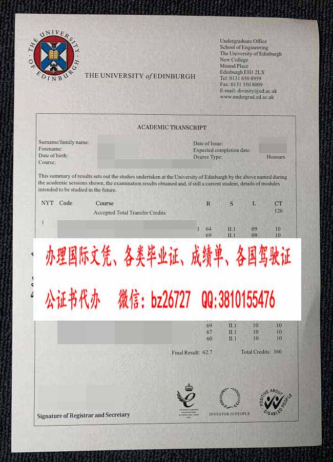 爱丁堡大学成绩单