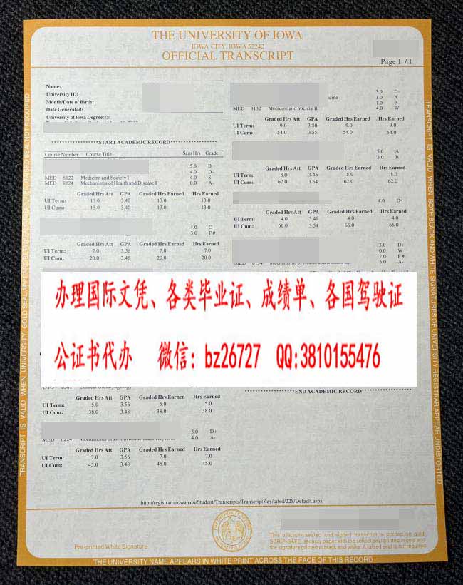 爱荷华大学成绩单