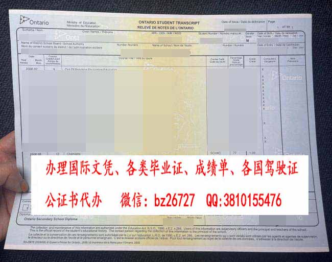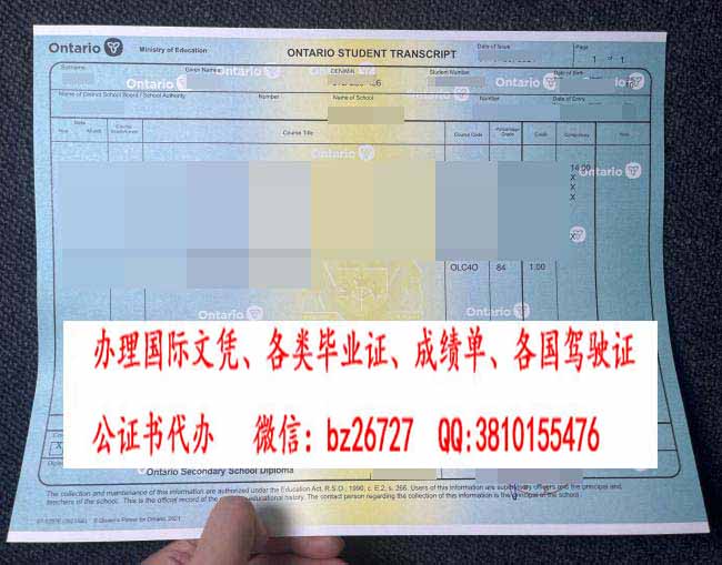 安大略省高中成绩单