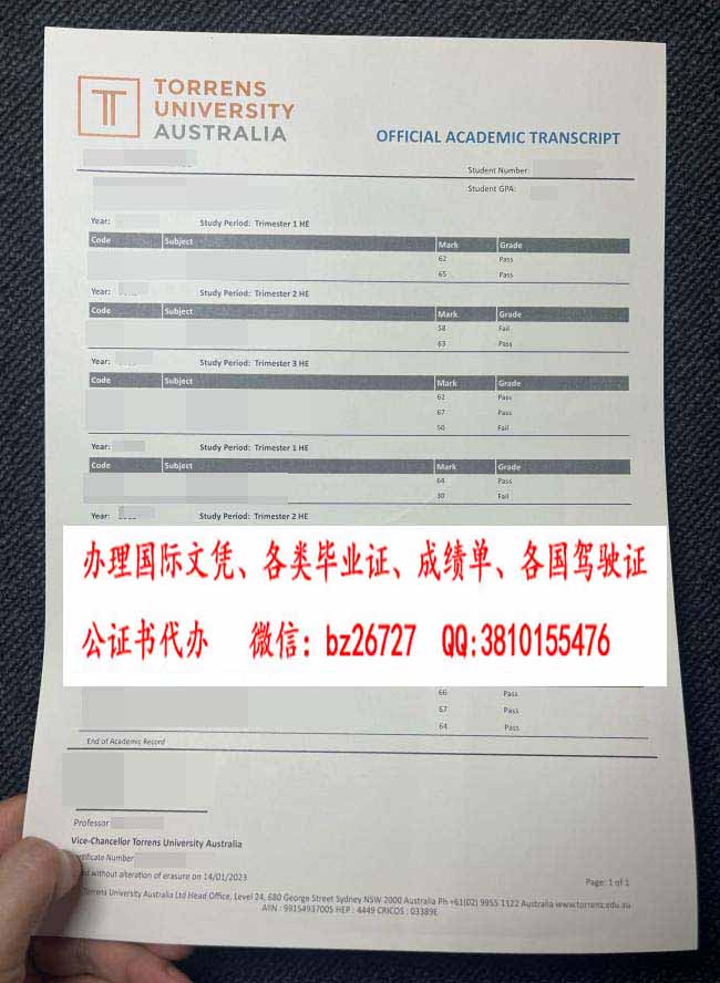 澳大利亚托伦斯大学成绩单