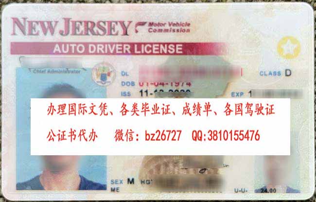 美国新泽西州驾照正面
