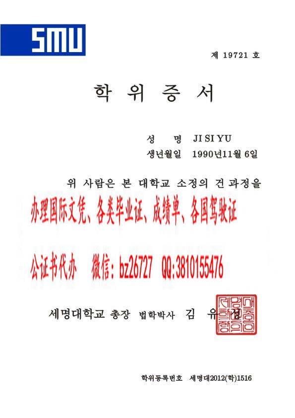 韩国世明大学毕业证样本