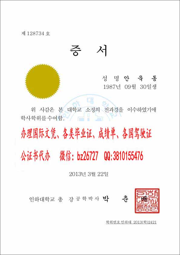 韩国仁荷大学毕业证样本