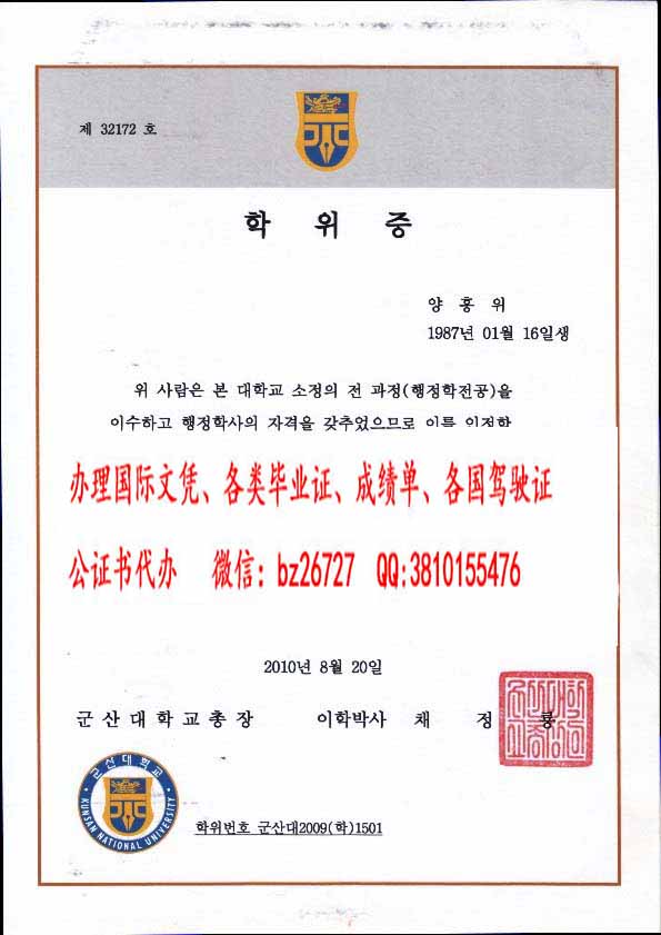 韩国群山大学毕业证样本