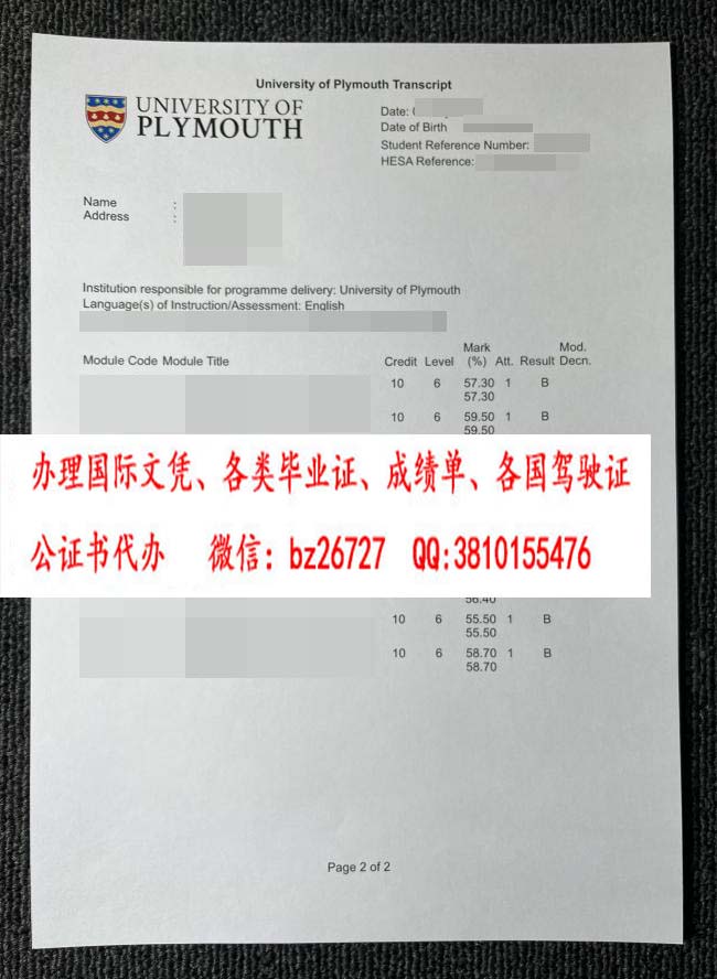 普利茅斯大学成绩单