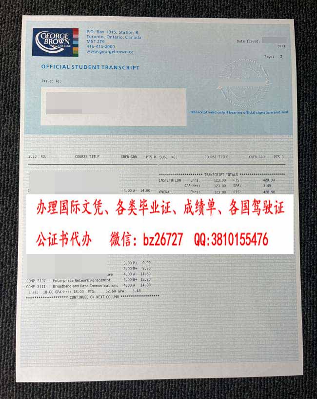 乔治布朗学院成绩单
