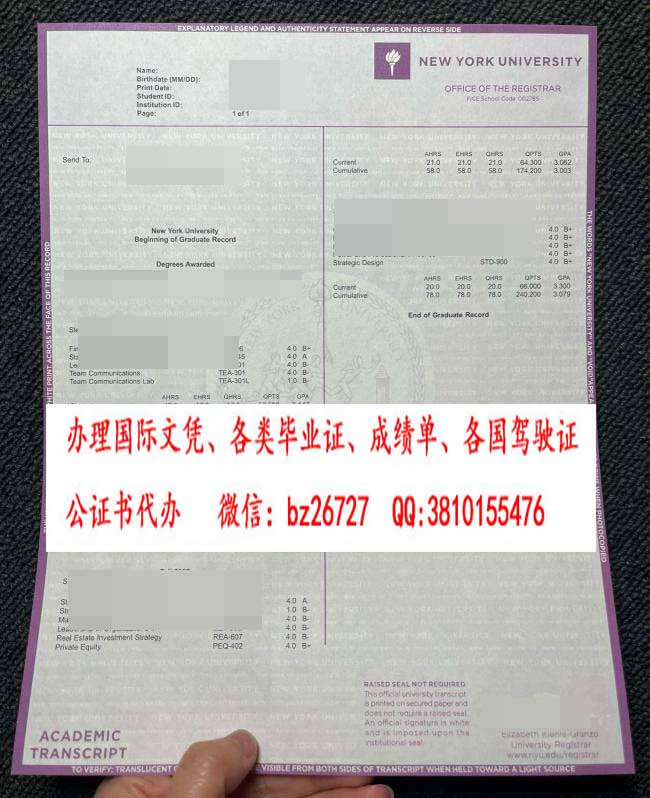 纽约大学成绩单
